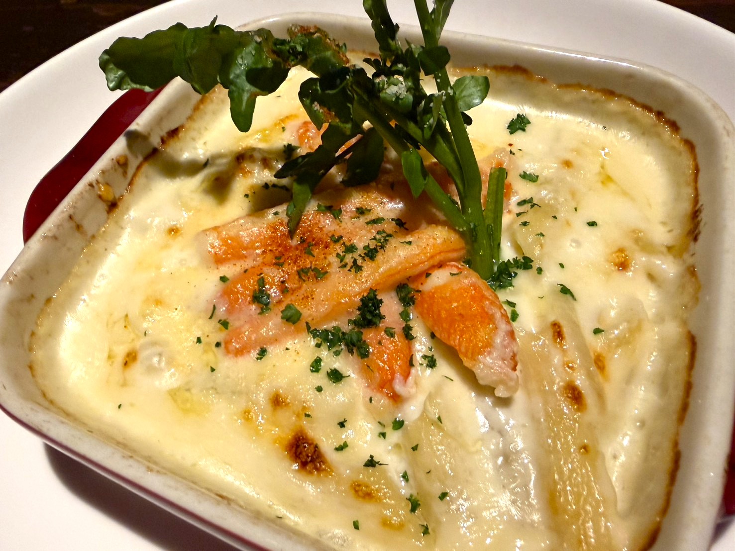 贅沢に使ったズワイガニの旨みが、口いっぱいに広がるあつあつのグラタン。スプーンを入れた瞬間に立ちのぼる香りが、食欲と気分をぐっと引き上げてくれる。寒さに負けない元気をもらえる、冬のパワーグルメとしておすすめの一皿。
